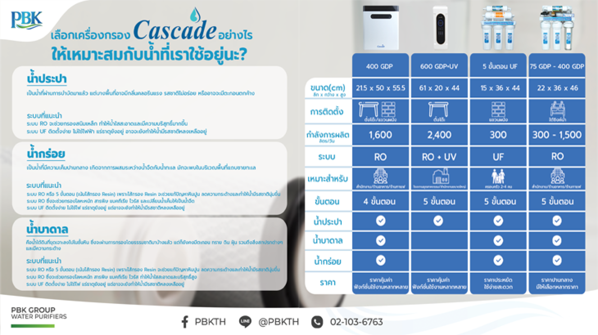 เลือกเครื่องกรองน้ำ Cascade รุ่นไหนดี? เจาะลึกความต่าง น้ำประปา น้ำกร่อย น้ำบาดาล